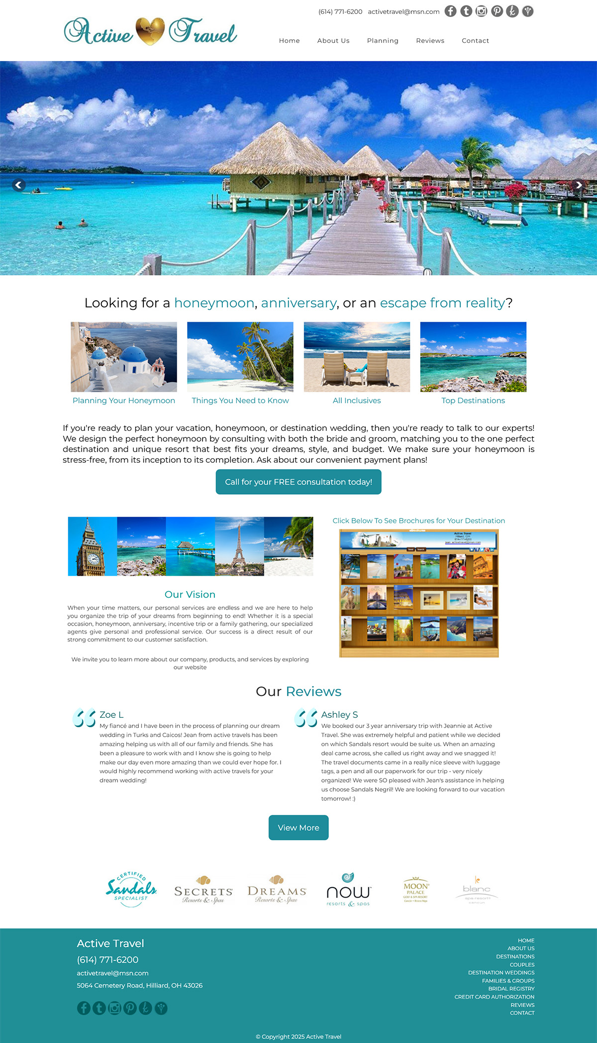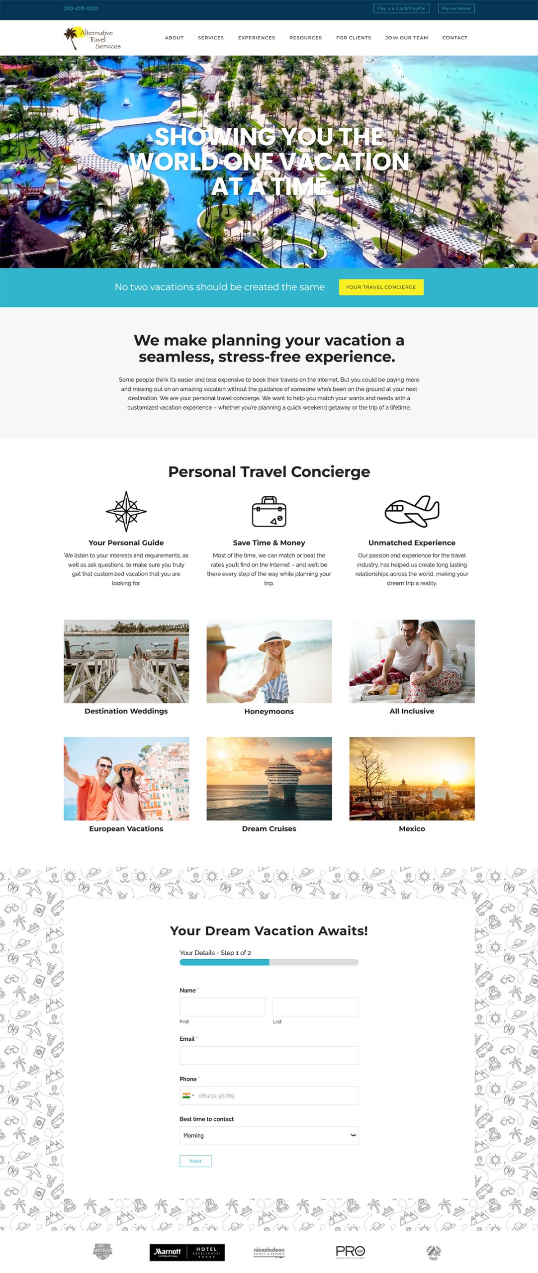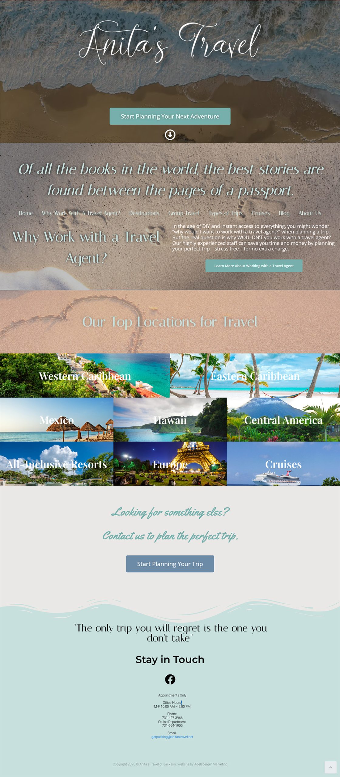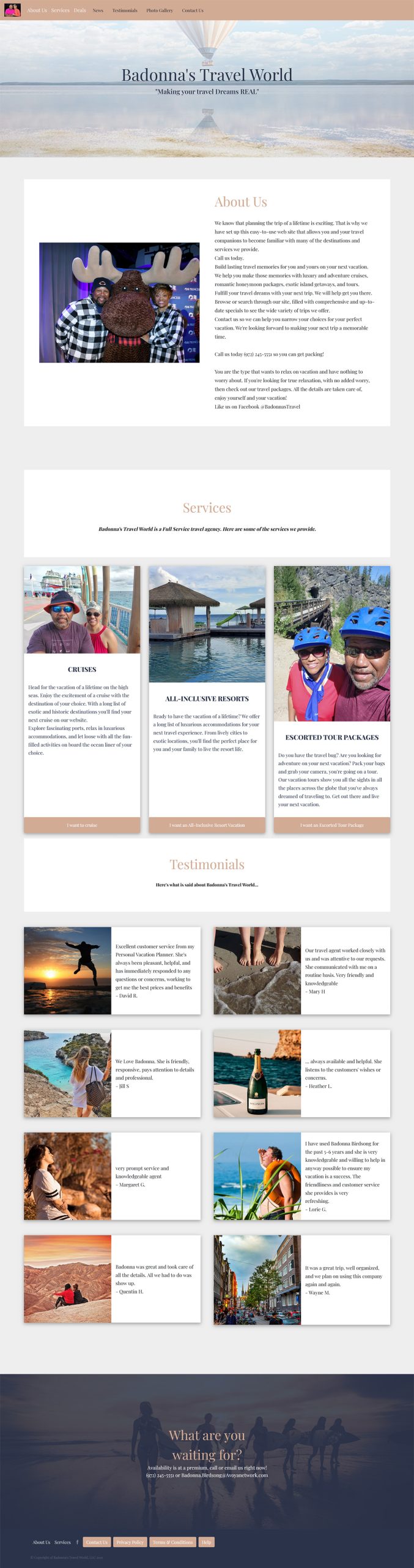 View My Works Crafting Web Experiences That Connect Scroll through my portfolio to see how strategy meets style in every website. All Small Business Real Estate Services Professional Law Health Food Travel Badonna’s Travel World Travel Services Travel Badonna’s Travel World Anita’s Travel of Jackson Travel Services Travel Anita’s Travel of Jackson Alternative Travel Travel Services Travel Alternative Travel Alpha World Travel Travel Services Travel Alpha World Travel Adventure Travel Planners Travel Services Travel Adventure Travel Planners Active Travel Travel Services Travel Active Travel Load More Loading More… You’ve reached the end of the list